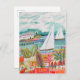 Deux voiliers et Cottage II de Karen Fields. Il comprend deux voiliers flottant dans l'eau entourés de fleurs colorées et de chalets.