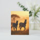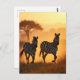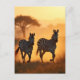 Deux zèbres traversent la savane africaine au lever du soleil sur cette belle carte postale. Parfait pour tous ceux qui aiment la nature, les animaux et l'extérieur.