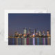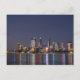 Carte postale comportant une photo de l'horizon de ville de Perth la nuit, avec des réflexions colorées en rivière de cygne, Australie occidentale.
