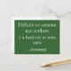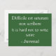 Carte postale verte turquoise avec une phrase latine et la traduction anglaise en dessous. "Il est difficile de ne pas écrire la satire", de Juvenal, un célèbre écrivain romain.
