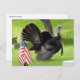 Dindon mâle patriotique déployant ses plumes de queue devant un drapeau américain