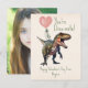Thème valentin "Dino-mite" avec illustration d'un dinosaure avec ballon en forme de coeur rose. Personnalisez le texte et la photo.