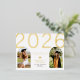 Modern trendy real gold foil big bold class of year typography senior class high school college or university graduation announcement and party invitation postcard with 2 custom pictures and an elegant classy luxury look. +++++++++ PLEASE NOTE that you can choose the color of the foil GOLD, ROSE GOLD or SILVER.