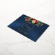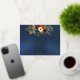 The Autumn Floral & Wreath RSVP - Blue Foil Invitation Postcard features a botanical wreath, bride & grooms first initials in foil and a wildflower bouquet in the beautiful colors of autumn on a blue background. The back has details for the recipient to fill out. Designed to coordinate with the "Floral & Foil Botanical Wreath" Wedding Collection. To change details, click «Personalize». To move the text or change the text size, font, or color click «Click to customize further» initials