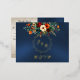 Carte Postale D'invitation À Feuilles D'aluminium Autumn Floral & Wreath RSVP - Blue
