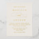 Carte postale simple et élégante d'invitation de mariage avec vos noms et les détails mariages affichés en feuille d'or avec accents de script de calligraphie sur un arrière - plan d'ivoire. Le dos de la carte postale en feuille d'or affiche votre adresse de retour, les détails RSVP et le site Web du mariage. Le design s'harmonise avec notre collection de mariages bien-aimés.