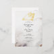 Carte postale pour un choix économique. Coquillages simples en feuille d'or avec calligraphie et polices classiques sur une invitation avant simple. Revers avec texture de plage sablonneuse aquarelle avec des tons marrons terreux. Le texte est noir, mais est personnalisable en couleur et en style, ainsi que l'option de personnalisation. Préférez-vous une autre couleur pour les lettres ? Utilisez simplement le sélecteur de couleur dans l'outil de conception.