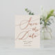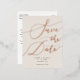 Élégant enregistrer la carte postale date avec texte de calligraphie manuscrit en or rose sur un arrière - plan crème.