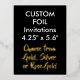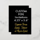 Cartes d'invitation personnalisées en feuille d'or véritable sur fond noir - 4,25" x 5,6" format portrait [format carte postale USPS qualifié].