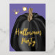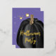 Carte Postale D'invitation À Feuilles D'aluminium Citrouille d'Halloween Purple Gold Script