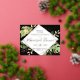 Cette carte postale élégante et moderne en feuille d'or tropical "Rehearsal Dinner" est un moyen facile d'inviter des amis et des familles à célébrer votre répétition mariage. Le "Dîner de répétition" ainsi que le nom, la date et l'emplacement du couple sont présentés sur le devant dans la couleur de papier de votre choix. Le texte est mis en surbrillance par un cadre dépoli. Des feuilles tropicaux, des feuillages et des fougères s'élèvent derrière le cadre sur un arrière - plan noir. Les plaques de feuille d'or ajoutent un peu de fantaisie sophistiquée à la conception. Le dos de la carte postale contient les détails du dîner de répétition en noir.