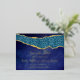 Carte Postale D'invitation À Feuilles D'aluminium Elégant Marine Blue Agate Mariage Enregistrer La D