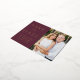 Annoncez votre date de mariage avec cette feuille élégante enregistrez la carte postale date. Le design comprend "Save the Date" en papier doré avec un arrière - plan de couleur vin. Personnalisez le moderne enregistrer la carte postale de date en ajoutant vos noms, date, emplacement du mariage et photo du fiançailles. Le papier journal enregistre la date de remise de la carte postale pour afficher votre adresse de retour et les détails du mariage. La photo enregistrer la carte date est parfaite pour tout thème mariage.