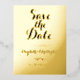 Carte Postale D'invitation À Feuilles D'aluminium Mariage élégant Enregistrer la date Black Faux Gol