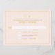 Carte de mariage simple rose et or en feuille de rose RSVP avec un design moderne et élégant avec votre monogramme à deux lettres en haut et vos détails entourés d'une mince bordure. Un design chic et design qui conviendra à un couple minimaliste.