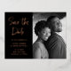 Carte Postale D'invitation À Feuilles D'aluminium Noir | Photo élégante Enregistrer la date Rose Gol