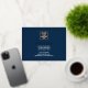 Si votre entreprise déménage, invitation tous vos clients à connaître avec un design moderne et élégant avec un endroit pour un logo d'entreprise. Navy Blue and White - Ajoutez votre marque d'entreprise à ce produit promotionnel.