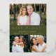 Annoncez votre date de mariage avec cette feuille élégante enregistrez la carte postale date. Le design comprend trois de vos photos fiançailles préférées avec "Save the Date" en papier feuille d'or et un arrière - plan vert olive. Personnalisez l'avant du minimaliste enregistrez la carte postale de la date en ajoutant vos noms, date et emplacement du mariage. L'enregistrement de la date de la carte postale inverse pour afficher votre adresse de retour et les détails du mariage. Le multi-photo enregistrer la carte postale date est parfait pour n'importe quel thème mariage.