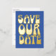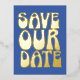 Retro Super les années 70 Français Blue Ultramarine et Gold Foil Enregistrer la date Carte postale