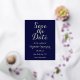 Carte Postale D'invitation À Feuilles D'aluminium Simple Elegant Marine Blue Wedding Enregistrer la