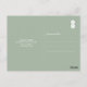 Invitez vos invités à votre dîner de répétition avec ma carte postale tropicale. Le design présente ma tortue de mer originale aquarelle et feuilles de palmier monstera dans des nuances de vert, de turquoise et de bleu. Vos noms sont inscrits dans une typographie moderne de lettrage manuscrit. La carte est au verso d'une couleur vert sauge complémentaire avec de la place pour l'adressage des invités et des détails supplémentaires. Pour voir la suite de faire-part assortis, visitez www.zazzle.com/dotellabelle