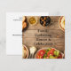 Carte postale d'invitation à un dîner élégant représentant une table de petit-déjeuner moyen-oriental traditionnel avec houmous, olives, pain plat et légumes frais sur un fond en bois rustique. La lumière chaude et le grand espace de copie le rendent parfait pour les dîners de Ramadan, les célébrations d'Eid, les réunions de famille, les événements de restaurant ou les soirées à thème culturel. Personnalisez facilement le texte pour créer une belle invitation pour votre occasion spéciale.