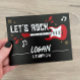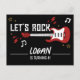 C'est parti pour le rock ! Cette carte postale recto-verso imprimée est parfaite pour une fête d'anniversaire sur le thème de la musique rock 'n' roll. Le recto de la carte postale présente des éléments noirs, dorés et rouges, notamment une guitare électrique, des étoiles, des notes de musique et des éclairs. Personnalisez le verso de la carte postale avec les détails de votre fête pour une invitation ultime et une expédition facile.