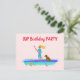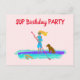 Carte postale d'invitation pour l'anniversaire d'une adolescente avec un thème de paddleboard. La conception illustrée montre une fille pagayant sur son tableau avec son chien à bord, tandis qu'une tortue de mer nage à côté. Personnalisez le texte du modèle sur le recto et le verso pour une fête de bienvenue. L'adresse postale peut être ajoutée séparément à chaque invitation de fête.