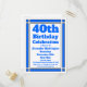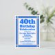 Envoyez des invitations à une fête d'anniversaire des 40 ans avec cette carte postale d'invitation. Personnalisée avec vos informations personnelles et celles de la fête.