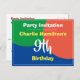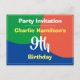 Invitation à une fête d'anniversaire spéciale avec nom et nombre d'années. Carte postale d'invitation à une fête pour un enfant de 9 ans