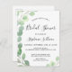 Ces invitations simples et élégantes pour une Baby Shower sont décorées avec de l'eucalyptus aquarelle dans des tons pastel de vert.
