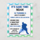 « Préparez-vous à un événement d'anniversaire sportif exaltant avec notre carte postale d'invitation sur le thème du joueur de hockey sur glace.