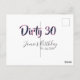 Carte Postale Dirty 30 happy birthday name date pink gray callig