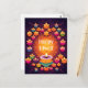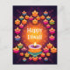 La carte postale représente une scène festive de Diwali, centrée autour d'un cercle radieux de Diyas (lampes à huile traditionnelles) qui forment un cadre lumineux pour un accueil chaleureux de Diwali. Chaque Diya brille d'une lumière dorée, projetant un éclairage doux et scintillant qui améliore l'atmosphère générale de célébration et de chaleur. L'arrière - plan de cette oeuvre d'art est un violet profond, riche, qui offre un contraste saisissant avec la lueur vive et joyeuse des Diyas. Cette toile de fond sombre ajoute une touche d'élégance et de sophistication à la scène, tout en mettant en valeur les couleurs vives et les détails complexes du Diyas. Les couleurs utilisées dans cette oeuvre sont audacieuses et expressives, ce qui renforce l'esprit festif de Diwali. La lumière chaude du Diyas contraste magnifiquement avec l'arrière - plan violet foncé, créant un équilibre visuel harmonieux. Chaque teinte est soigneusement sélectionnée pour contribuer à la vitalité globale et à l'énergie de la scène. Les formes de la composition sont robustes et bien définies, ajoutant à l'effet visuel audacieux de l'oeuvre. L'arrangement circulaire des Diyas crée un sentiment d'unité et d'exhaustivité, symbolisant la nature cyclique de la vie et la célébration continue de la lumière sur les ténèbres. Dans l'ensemble, cette carte postale est un mélange captivant d'art numérique moderne et d'éléments culturels traditionnels, qui saisit parfaitement l'essence festive de Diwali.