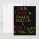 Donnez-moi du café pour changer les choses que je peux et que je veux pour accepter les choses que je ne peux pas