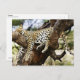 Carte d'animal montrant un guépard endormi sur un arbre. Le guépard (Acinonyx jubatus) est un gros félin qui habite la majeure partie de l'Afrique et certaines parties de l'Iran. Le guépard peut courir plus vite que n'importe quel autre animal terrestre, aussi vite que 112 à 120 km/h (70 à 75 mi/h). en petites rafales couvrant des distances allant jusqu'à 500 m (1600 pi), et a la capacité d'accélérer de 0 à 100 km/h (62 mi/h) en trois secondes. Sa principale stratégie de chasse consiste à abattre des proies rapides comme diverses espèces d'antilopes et lièvres. Presque toutes les facettes de l'anatomie du guépard ont évolué pour maximiser son succès dans la poursuite, le résultat d'une course aux armements évolutive avec sa proie. En raison de cette spécialisation, cependant, le guépard est mal équipé pour se défendre contre d'autres grands prédateurs, la vitesse étant son principal moyen de défense.