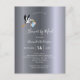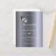 Un baby shower par mail/carte d'invitation de douche interurbain virtuelle. Un arrière - plan métallique à l'aspect faux argenté, des lettres blanches. Avec une cigogne volante tenant un bébé garçon. Personnalisez et ajoutez le nom de la future maman et les détails de votre fête Zoom/Skype. Retour : conception de carte postale ordinaire