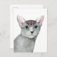 Cette impression d'aquarelle présente un chat gris orné de bijoux | Par Grace Popp