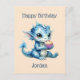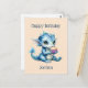 Carte Postale Dragon Bébé Bleu Mange un Cupcake