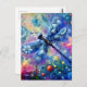 Carte Postale Dragonfly Abstraite lunaire Floral Turquoise Rose