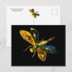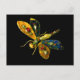 CARTE POSTALE DRAGONFLYE EN OR ANTIQUE AVEC PIERRES PRECIEUSES E