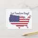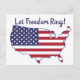 Carte postale avec l'image des États-Unis continentaux surimposés du drapeau américain rouge, blanc et bleu. Le texte dit : "Que la liberté retentisse".