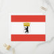 Invitation Carte postale avec variante du drapeau de Berlin, drapeau d'état avec bandes horizontales de rouge et blanc, avec une illustration d'un ours noir à l'intérieur d'un bouclier avec couronne