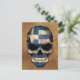 Ce design unique présente le drapeau de la Grèce peint sur un crâne agressif. Les couleurs grecques recouvrent tout le crâne avec de grandes fissures serpentant à travers l'os. Le crâne est assis sur un arrière - plan vieilli, usé, aux couleurs marron naturel qui donne au motif un aspect vintage. Ce motif sombre est une façon unique de montrer son patriotisme.