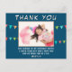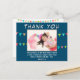 Joli drapeau à flots photo d'anniversaire merci carte postale. Merci à votre invité d'être venu à la fête d'anniversaire de votre enfant! Le design a des drapeaux colorés de fête d'anniversaire et une photo dans un cadre sur un arrière - plan bleu marine - insérez votre photo dans le modèle. Changez le message de remerciement si vous voulez et le nom de l'enfant.