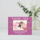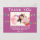 Joli drapeau à flots photo d'anniversaire merci carte postale. Merci à votre invité d'être venu à la fête d'anniversaire de votre enfant! Le design a des drapeaux colorés de fête d'anniversaire et une photo dans un cadre - insérez votre photo dans le modèle. Changez la note de remerciement d'anniversaire et le nom de l'enfant.