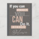 Ce design comporte une citation inspirante qui dit : "Si vous pouvez le rêver, vous pouvez le faire. Crois toujours." Le texte est arrangé de façon créative avec un mélange de caractères gras et de caractères de script sur un arrière - plan pointillé, ce qui en fait une pièce de motivation parfaite pour quiconque cherche à rester inspiré et concentré sur leurs objectifs.