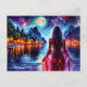 Carte Postale Dreamsea beach fille avec lune et lumières