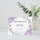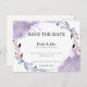 Un moyen pratique de demander à vos invités d'enregistrer la date est via une carte postale ! Et ils ne manqueront pas cette jolie aquarelle violette et feuillue quand elle arrivera par leur porte ! Les feuilles fantaisistes s'écoulent gracieusement autour de deux bords de la frontière ovale, et il y a des éclaboussures de lilas à deux coins. La typographie noire serif se trouve confortablement au centre. Vous pouvez facilement personnaliser le texte, et les polices et la couleur du texte peuvent également être modifiées si vous le souhaitez via l'option Cliquer pour Customiser plus.