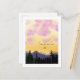 Send a heartfelt touch of wanderlust with this beautiful “Wish You Were Here…” postcard! Featuring a soft, dreamy watercolor landscape of majestic mountains silhouetted against a vibrant sunset sky in shades of pink, peach, lavender, and golden yellow. Wispy clouds drift above, while a flock of birds soars gracefully over lush evergreen forests—evoking that perfect sense of peaceful escape and longing to share the moment.